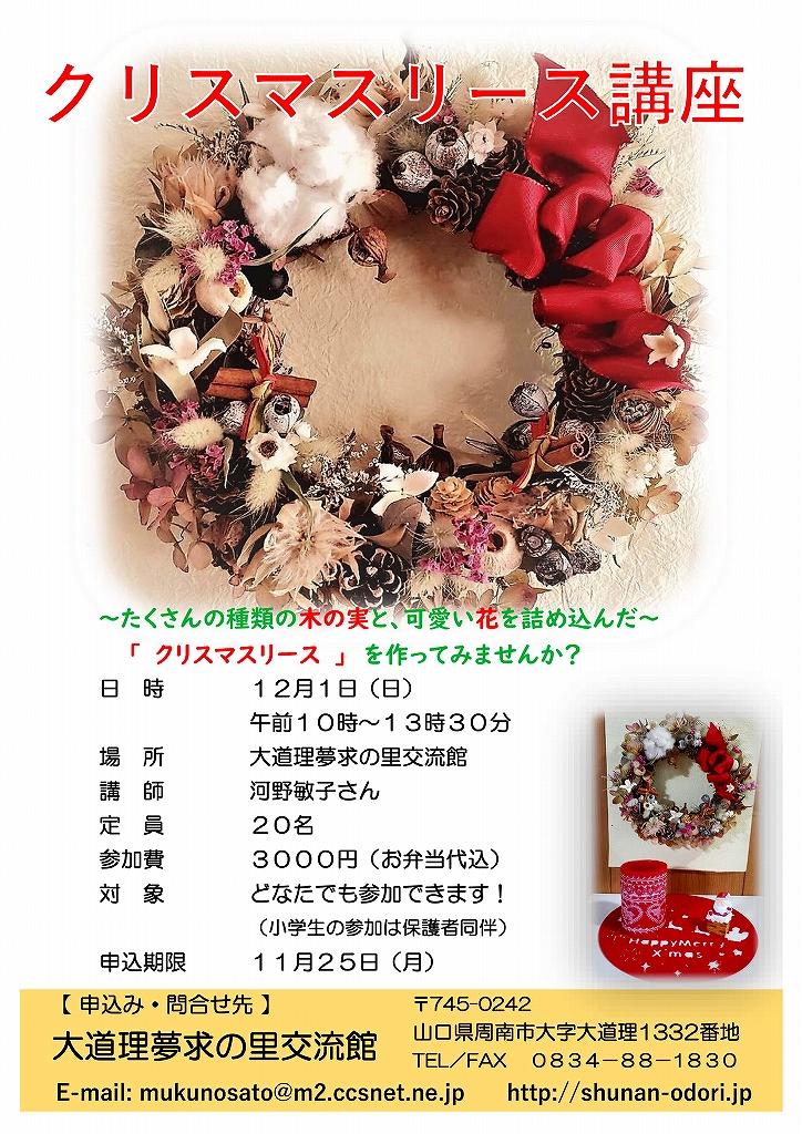 詳細はチラシを参照クリスマスリース講座 [その他のファイル/714KB]