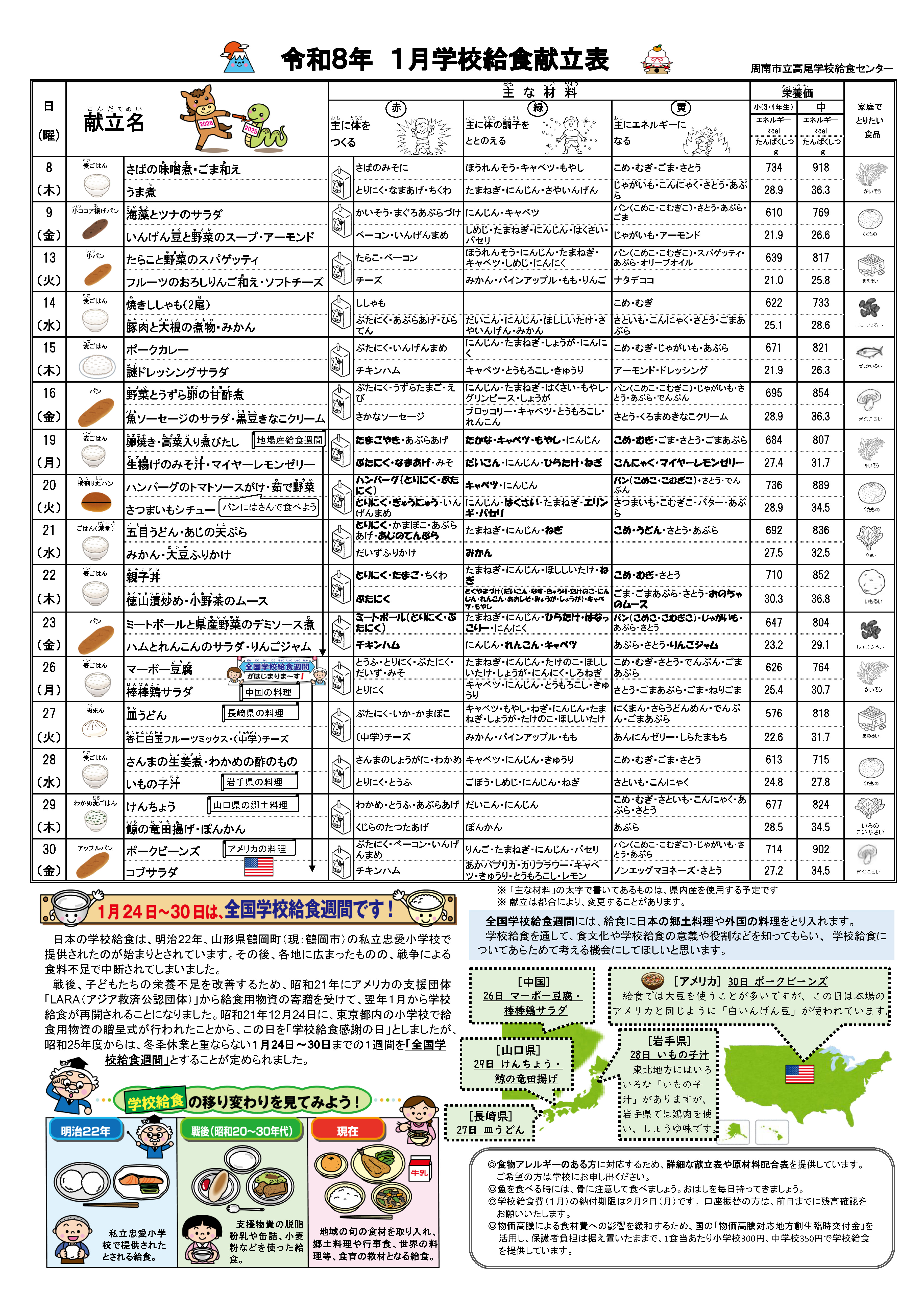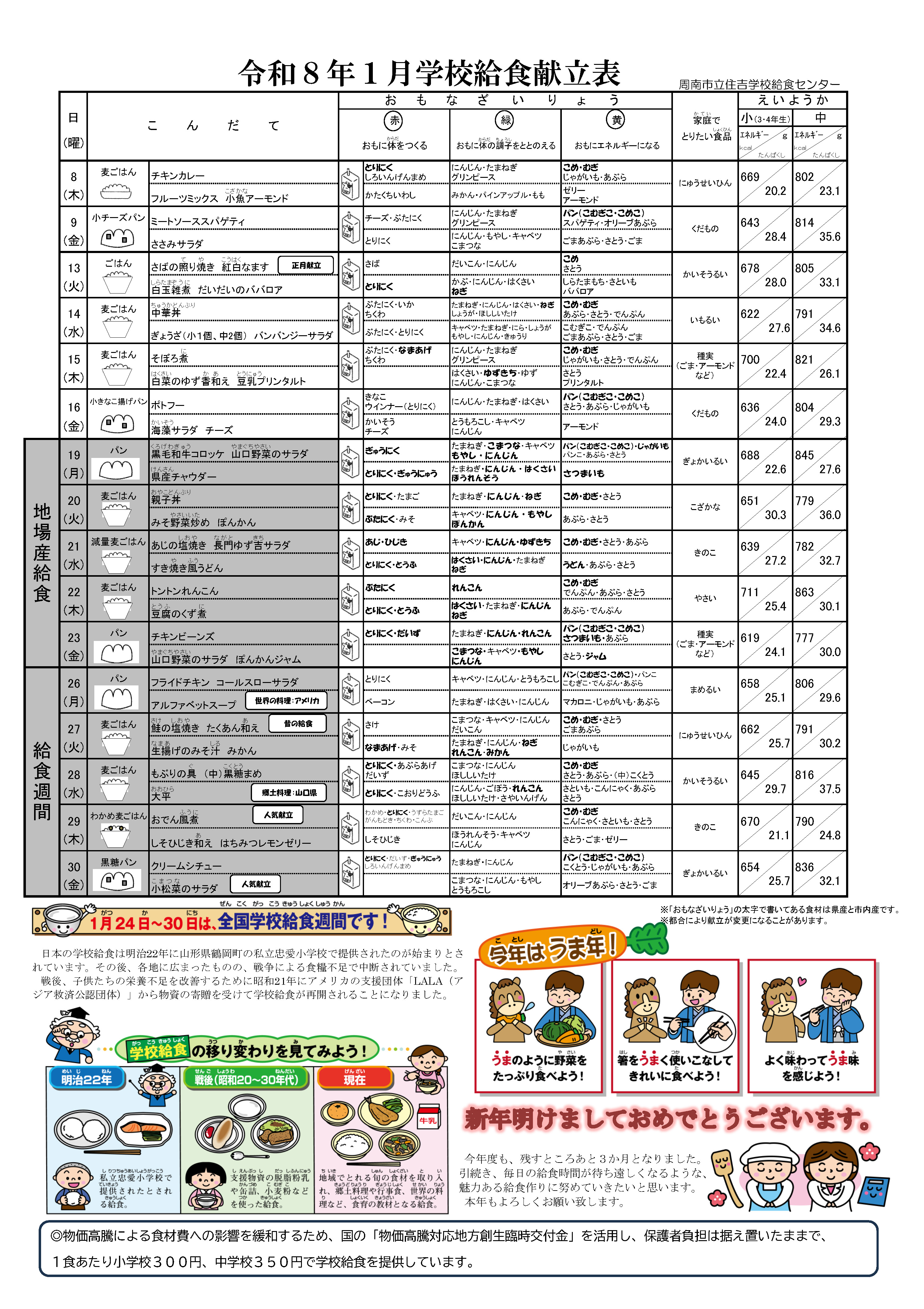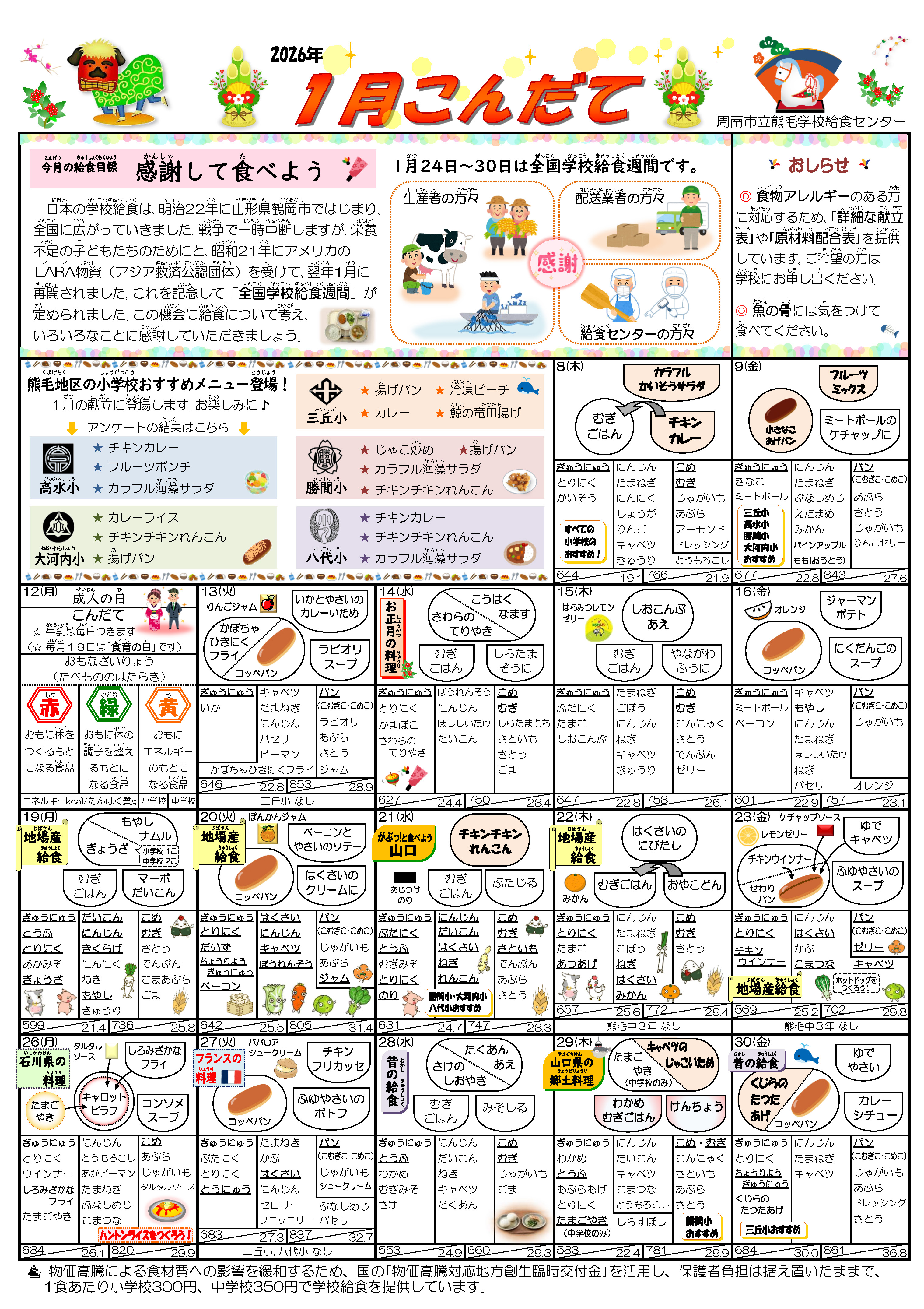 ・令和7年度の学校給食は、国の「物価高騰対応地方創生臨時交付金」を活用し、保護者負担は据え置いたままで、1食あたり小学校300円、中学校350円で学校給食を提供しています。詳しくはこちら