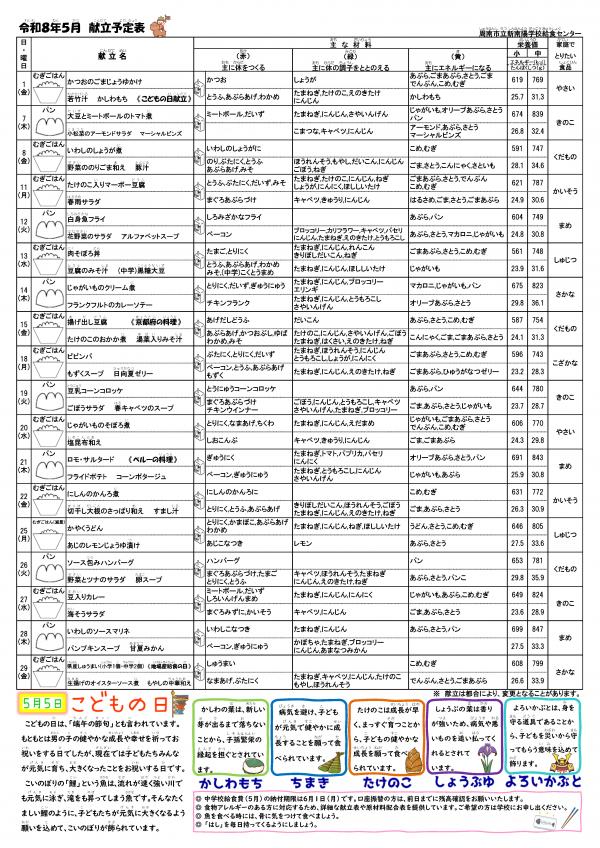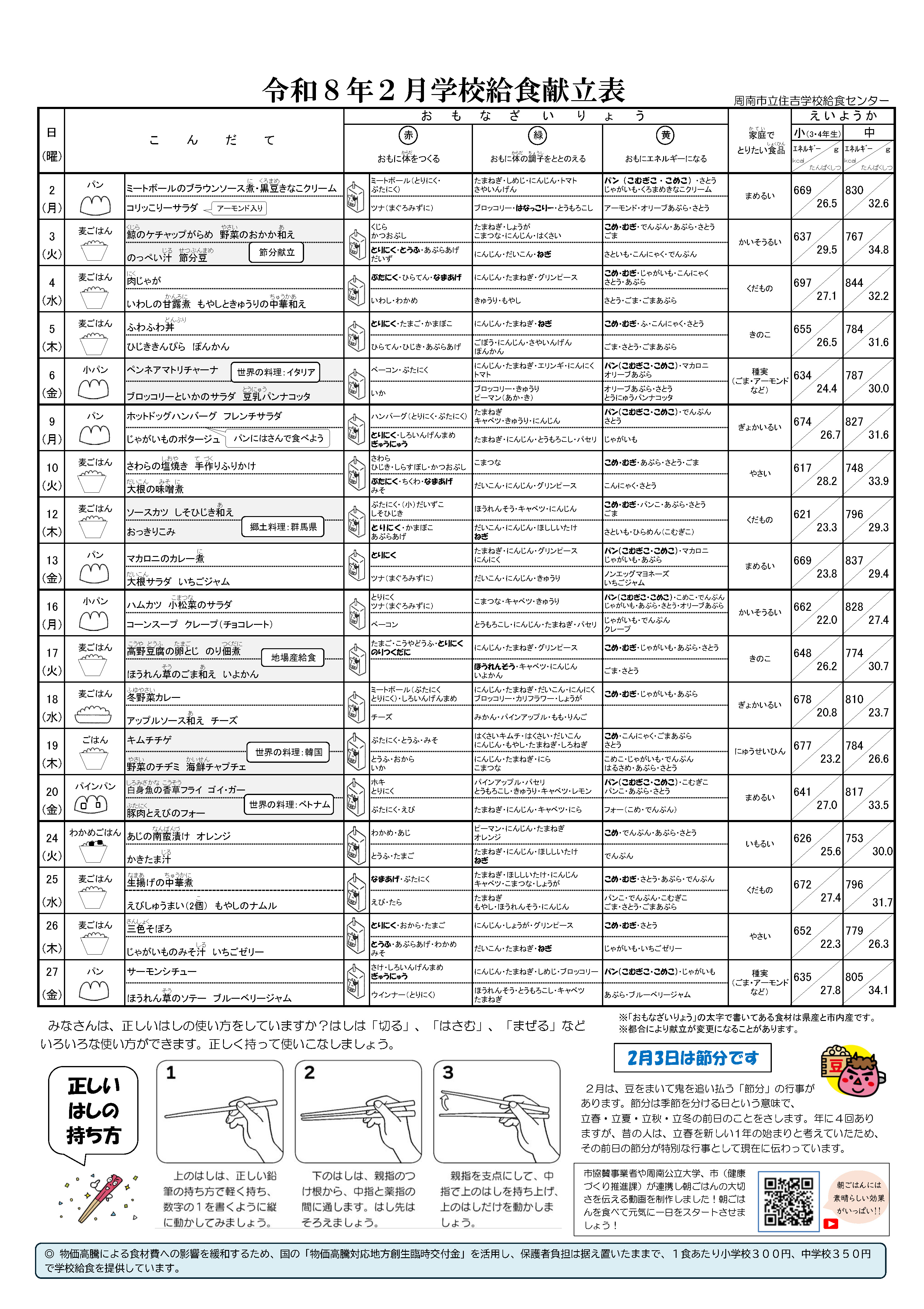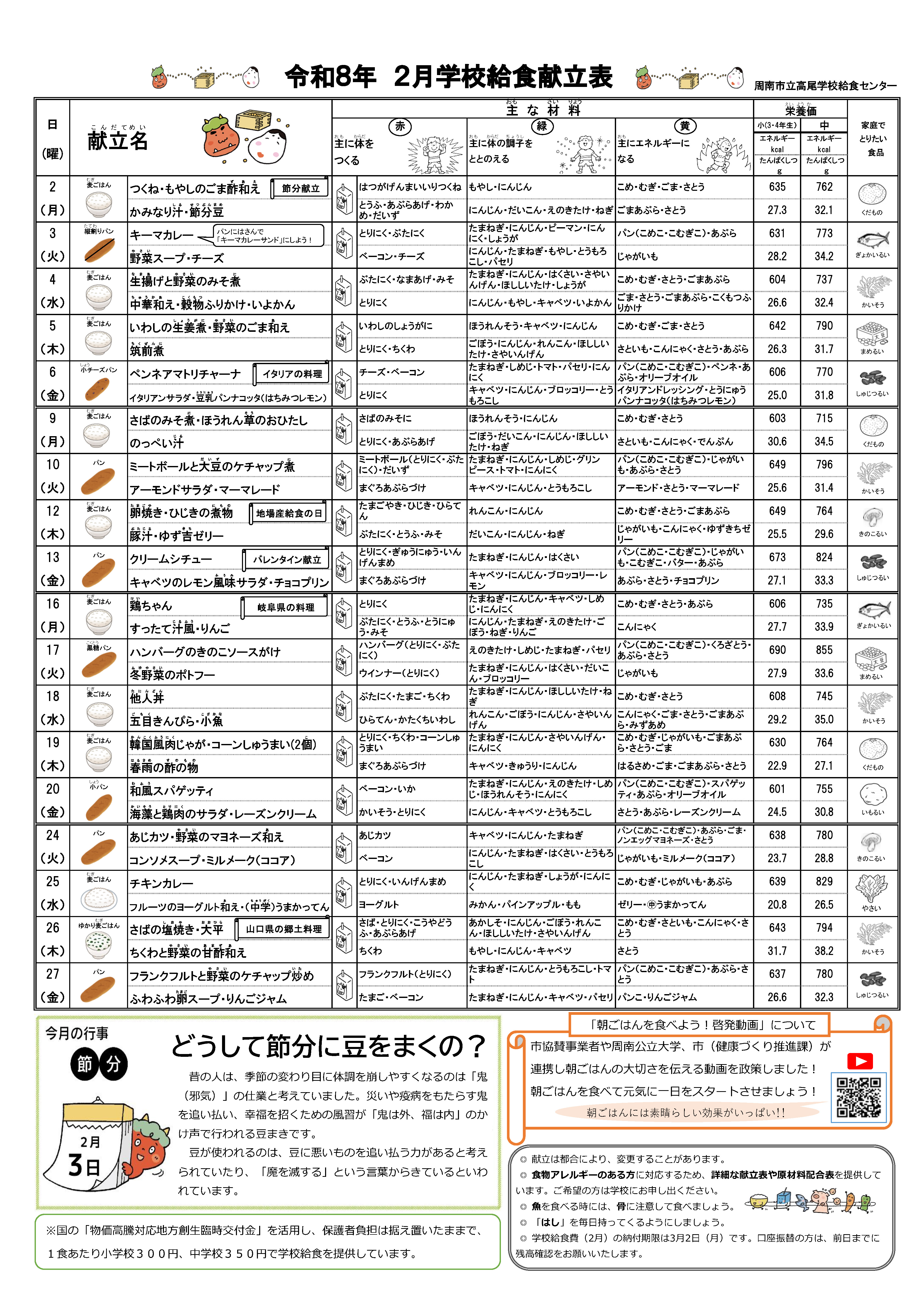 | 岐山小・周陽小・秋月小・須磨小・沼城小・秋月中・須々万中 | 高尾学校給食センター |