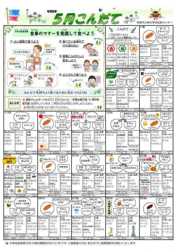 | 遠石小・久米小・櫛浜小・鼓南小・桜木小・鼓南中・太華中・周陽中 | 栗屋学校給食センター |