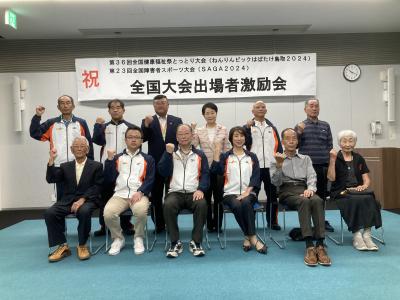 「第36回全国健康福祉祭とっとり大会」および「第23回全国障害者スポーツ大会」に出場される選手の皆さまの激励会を行いました。大会当日は、日々の研鑽の成果を存分に発揮していただきたいと思います。どうぞ、頑張ってきてください。