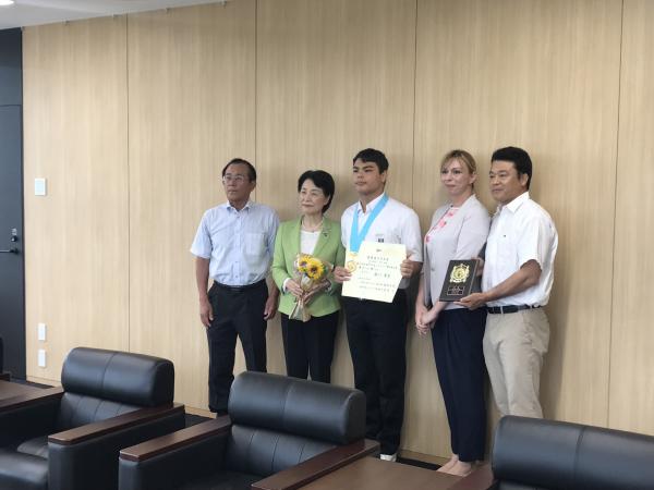 6月8日~9日に茨城県で行われた、令和元年沼尻杯第45回全国中学生レスリング選手権大会で優勝された、掛川零恩選手が表敬訪問に来られました。
