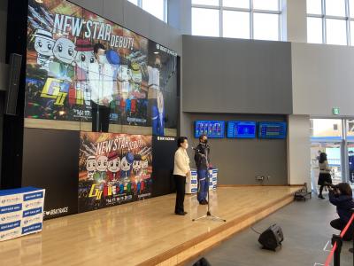 白井英治選手の賞金王決定報告会がボートレース徳山の中央スタンドイベントステージで開催されました。昨年12月18日にボートレース大村で開催された第37回SGボートレースグランプリにて見事優勝・賞金1億円を獲得され、年末までのレースでの獲得賞金を加え、賞金王となられました。誠におめでとうございます。