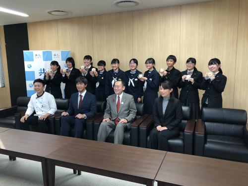 徳山商工高校と秋月中学校の生徒、そしてジェラテリアクラキチ・ミニヨン手作り工房カワムラにより、共同開発された「周南クッキー夢サンド」の完成披露に来ていただきました。