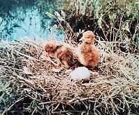 卵は2個産みオスとメスが交替して暖めます。卵は1か月ぐらいでかえり、生まれたヒナはすぐに巣を離れて親と一緒にエサを探すことができるようになります。5月ごろに生まれたヒナは、日本に渡りをする10月ごろまでにはほぼ親鳥と同じ大きさに成長します。