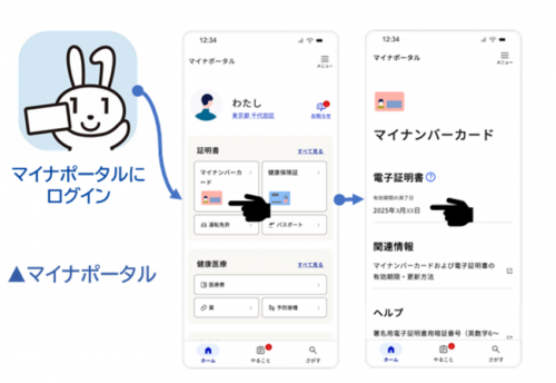 スマートフォン等でマイナポータルにログインして医療保険加入情報を確認できます。
