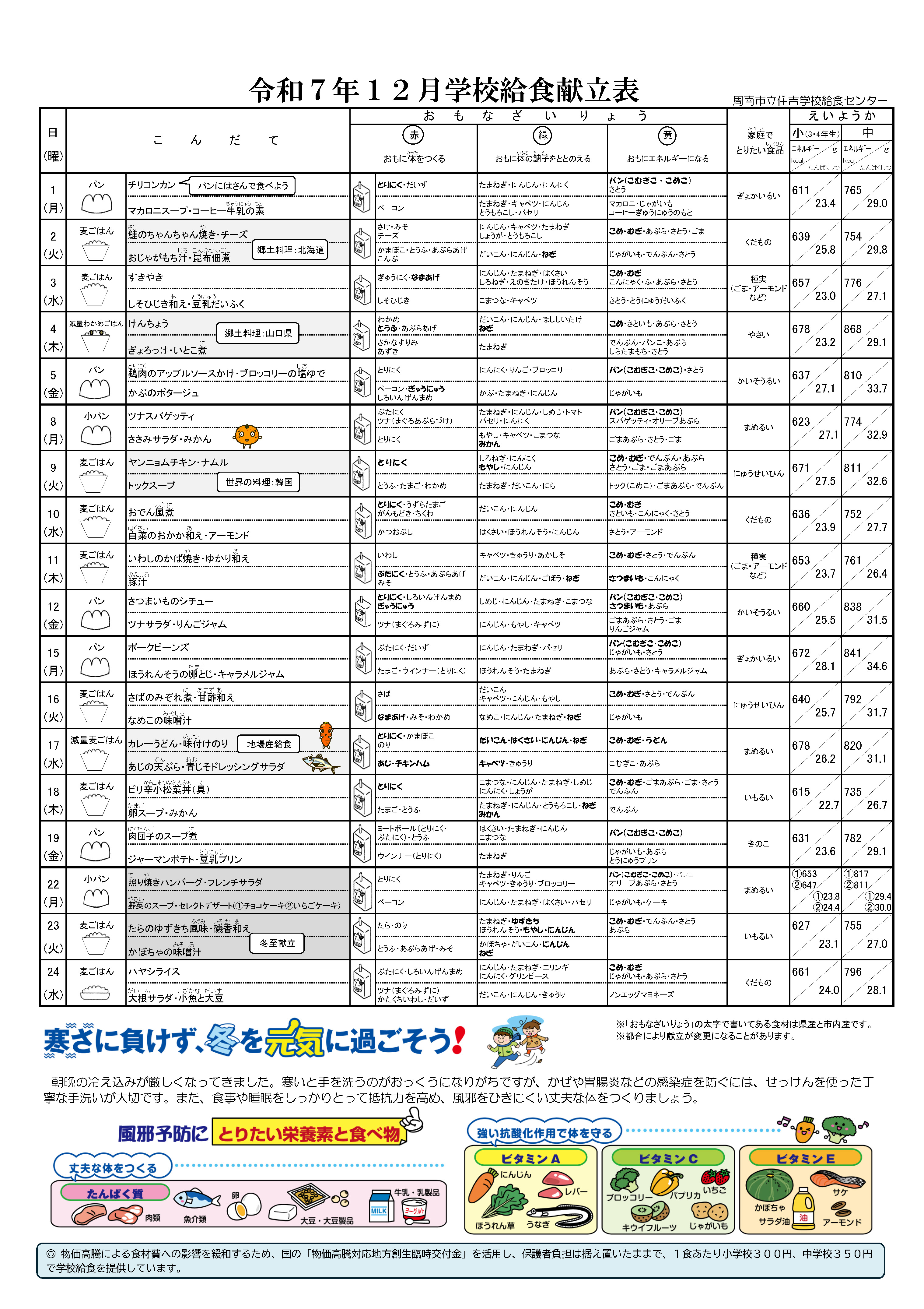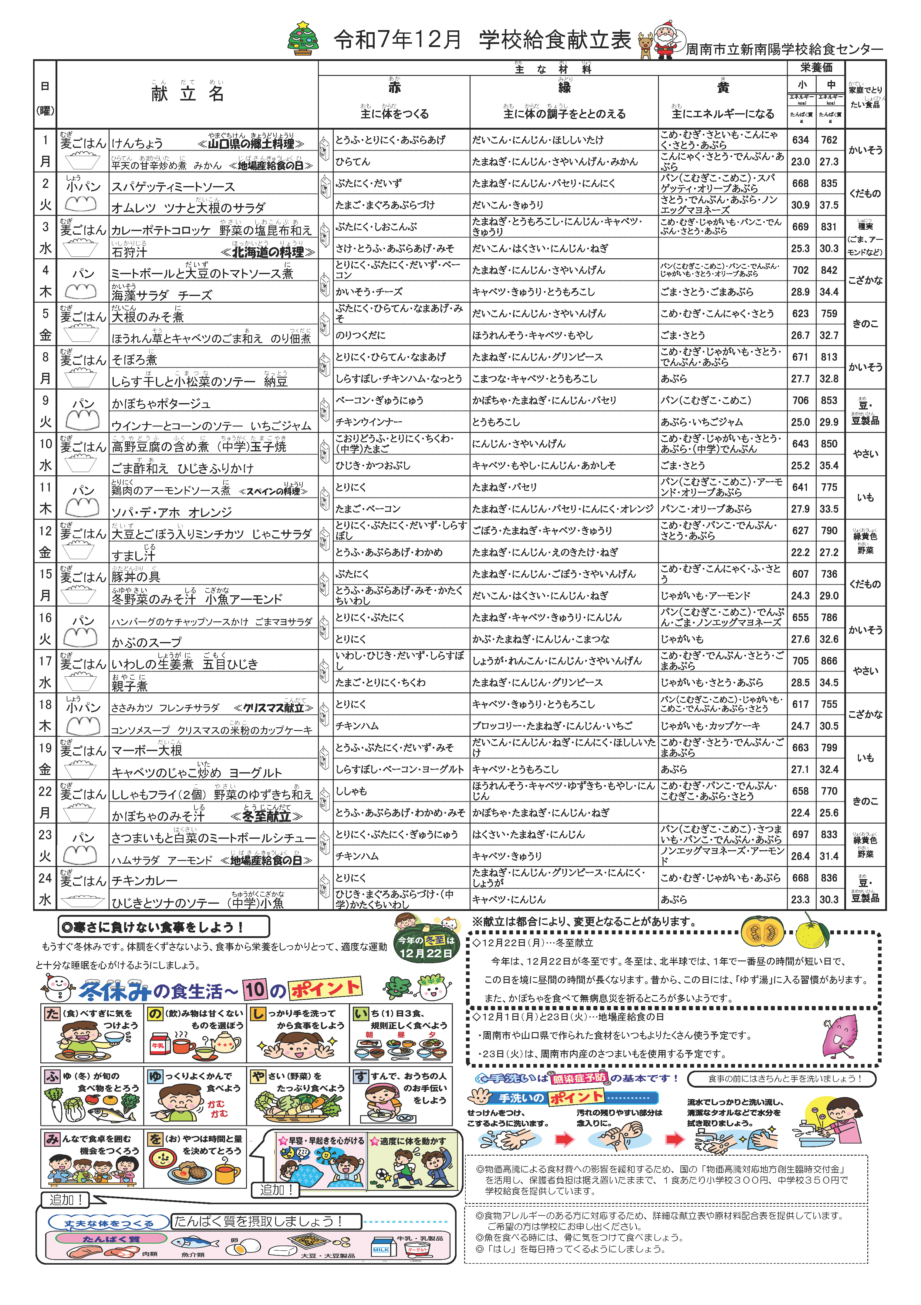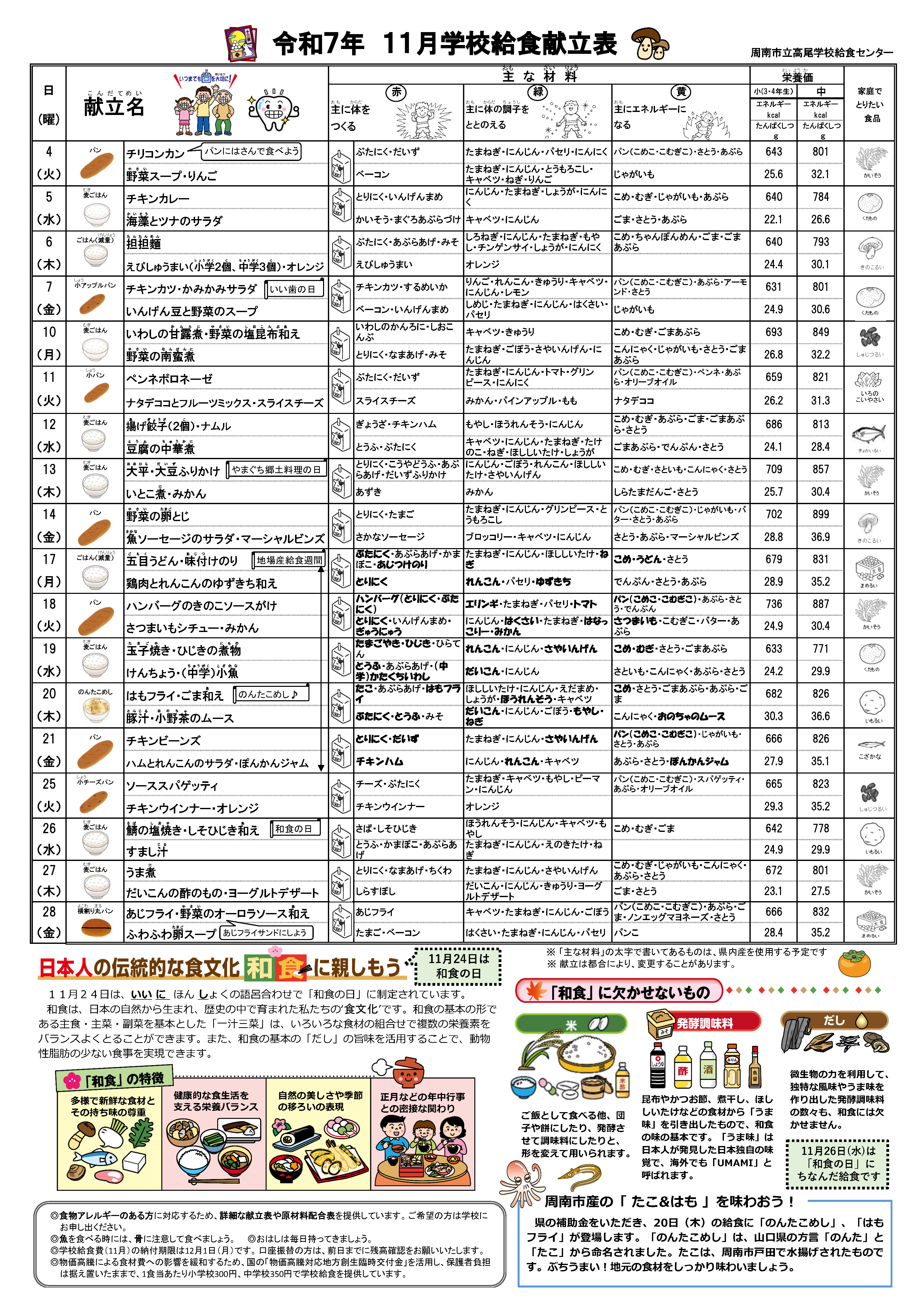・令和7年度の学校給食は、国の「物価高騰対応地方創生臨時交付金」を活用し、保護者負担は据え置いたままで、1食あたり小学校300円、中学校350円で学校給食を提供しています。詳しくはこちら