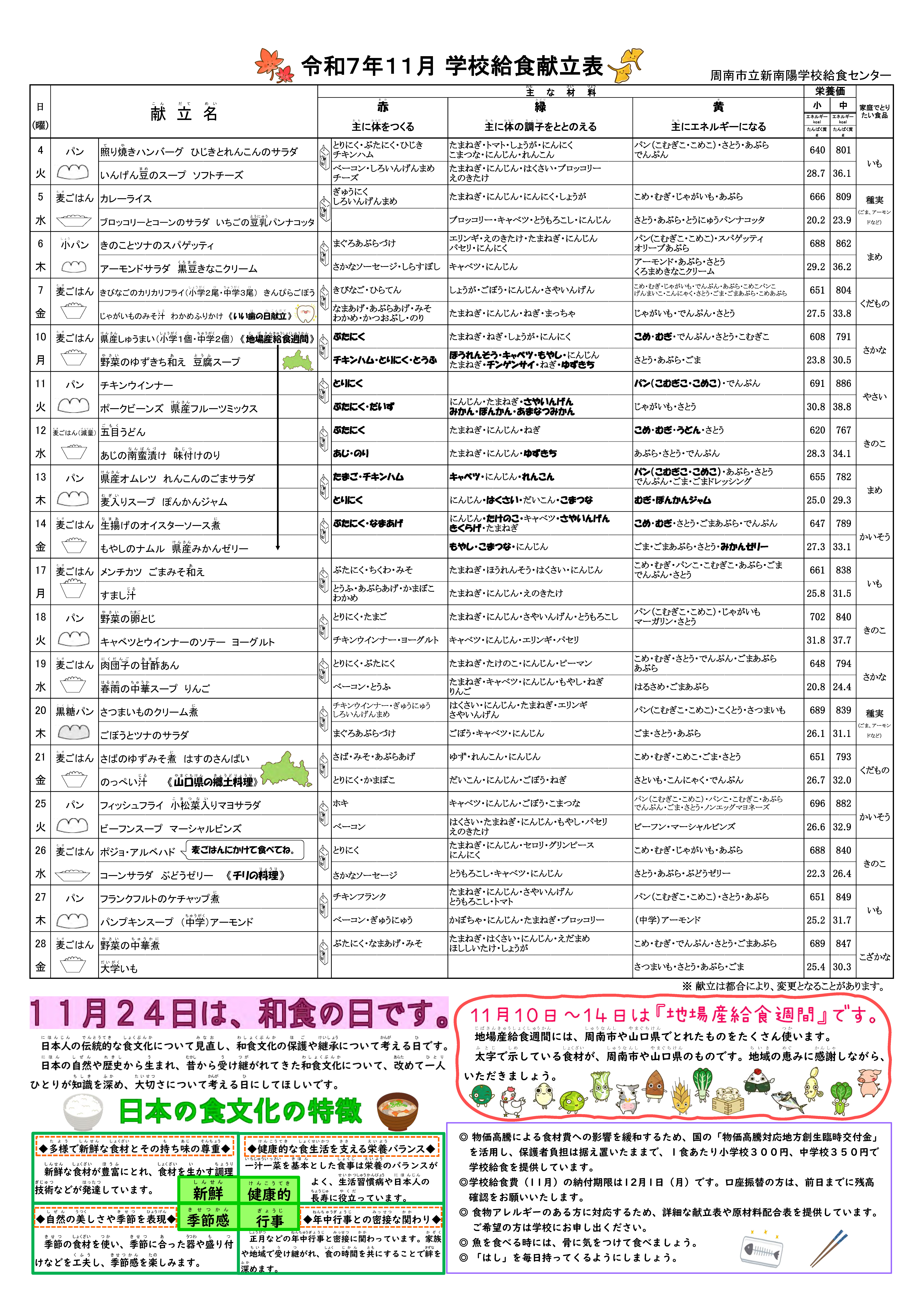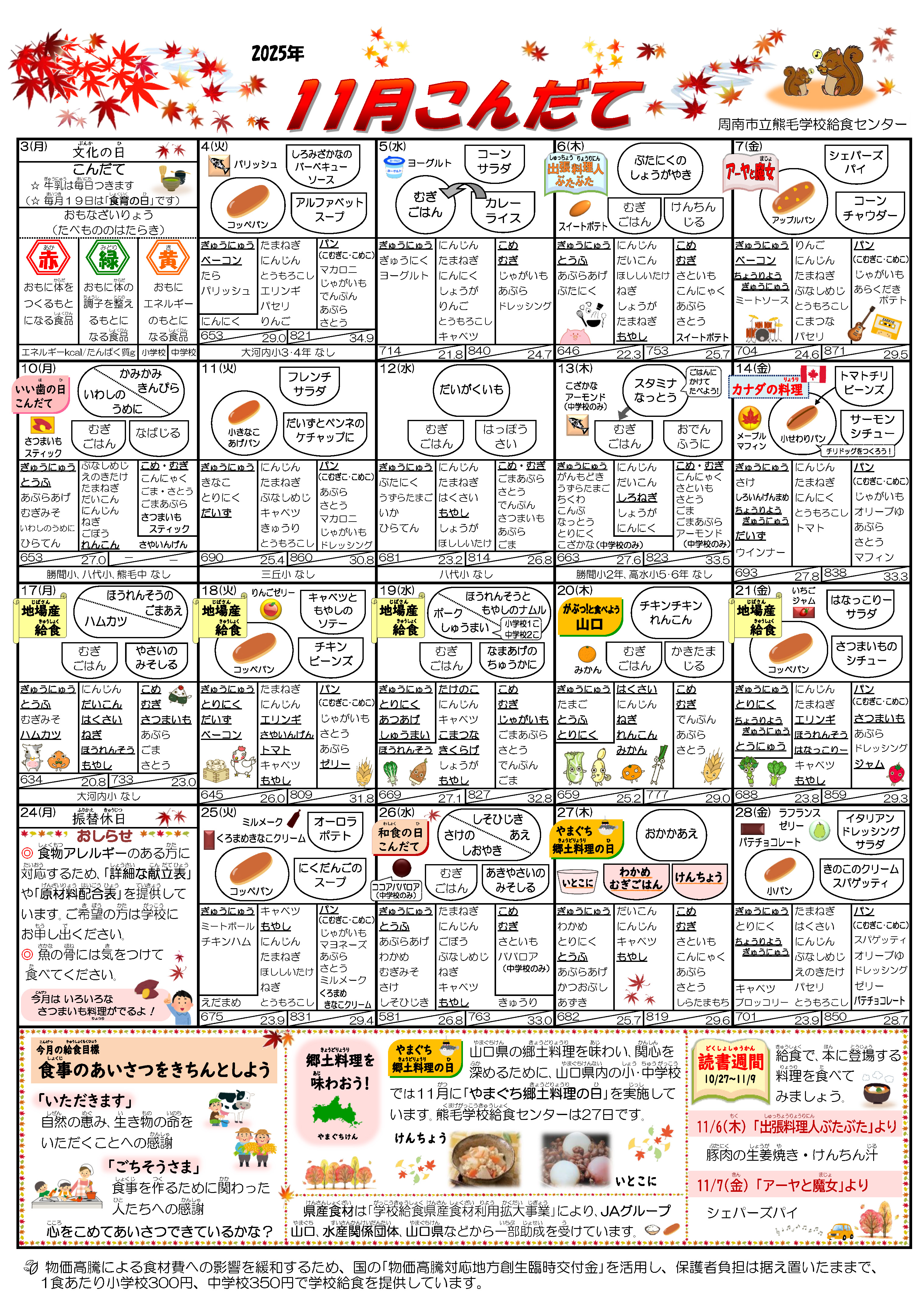 | 岐山小・周陽小・秋月小・須磨小・沼城小・秋月中・須々万中 | 高尾学校給食センター |